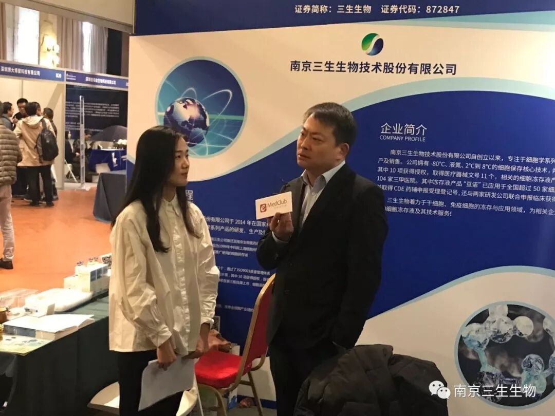 2019年4月2日/医麦客 eMedClub/--在刚刚落幕的2019(第二届)上海国际肿瘤免疫治疗技术治疗大会上,南京三生生物公司(证券代码:872847,以下简称三生生物)研发的中国首款治疗用细胞冷冻保护剂(亘诺)备受细胞治疗行业的关注,在公司展台前关注这款产品的公司和学者络绎不绝。为此医麦客记者对三生生物CEO徐念沁博士作了深入的采访,采访内容涉及CAR-T治疗领域的趋势、公司药用级亘诺细胞保存液在国家食品药品监督管理总局药品审批中心(CDE)受理进展与在行业内的影响、质量控制等方面,徐博士对这些细胞治疗制剂研发公司和广大学者关心的问题进行了详细的回答和经验分享。